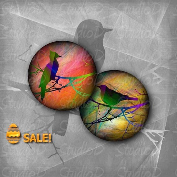 SALE - Bird on a branch, digital collage sheet, round images, 2 inch circle, key chain, resin pendants, bezel setting, scrapbooking by StudioDprint