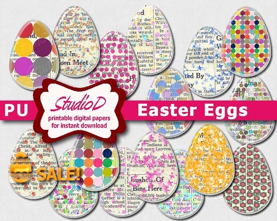 SALE - Easter egg clipart, Grungy scrapbook elements, Rustic Easter embellishment, Digital collage sheet for instant download by StudioDprint