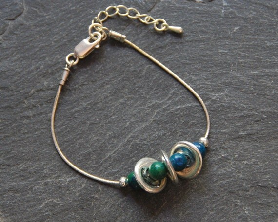 Silver bracelet with Chrysocolla, Boho Gemstone bracelet, Personalized beaded bracelet, Bohemian jewelry, Gift for her, 2014 by StudioDjewelry