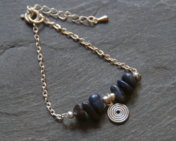 Silver and Sapphire Bracelet, September Birthstone Bracelet, Blue stone jewelry, Birthday Gift for Her, Beaded Charm Bracelet, 1158-9 by StudioDjewelry